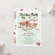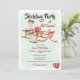 Convites de aniversário modernos e legal, pintados à mão, para festas de trenó e cacau quente, com um trenó de madeira rústico, botas de neve de inverno, copo de chocolate quente com neve. Uma legal festa de aniversário de inverno divertida.