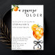 Orange Aperol Spritz A Squeeze Older aniversário de 30 anos Invitation - Um aniversário elegante, simples e chic para uma festa de aniversário temática Aperol Spritz. Com um cocktail laranja refrescante com uma fatia de laranja e um granizo de menta amarrados com um arco de coquete preto. O convite diz: "A Squeeze Older". Lá atrás encontre uma laranja divertida. Personalize este modelo de convite de aniversário adulto editável com seus próprios detalhes de evento. Disponível para impressão ou como um download digital instantâneo, fácil de enviar por email, texto ou mídia social. Perfeito para uma festa de aniversário de 30 anos, celebração de aniversário de 40 anos, cesto de 50º bday ou coquetel de 60º marco.