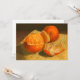 Flat card illustration featuring a traditional still life painting of oranges. Artwork: Oil pastel. Copyright: Dominic A. White.