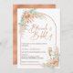 Laranja Boho Cactus Brunch Bubbles Chá de panela Faux rosa de ouro, caligrafia moderna e chá de panela borbulhante em estilo boêmico com um adorável arranjo de cacto florado laranja, grama pampas e um falso arco rosa de ouro.