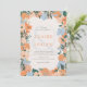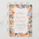 Este elegante convite para o casamento apresenta um fundo cor-de-rosa pincelado rodeado por flores e laranjas. O verso apresenta um fundo de rosa claro com padrões florais. Personalize-o para as suas necessidades. Você pode encontrar produtos correspondentes na minha loja.