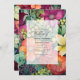 Laranja, morango e convite de casamento floral verde.