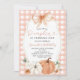 EDITABLE Orange Pumpkin Fall Gingham Primeiro Convite De Aniversário Elegante Nosso Pequeno Pumpkin Está Virando Um Convite de aniversário