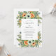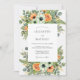 This design features a warm palette of orange and sage green, creating a natural and organic atmosphere. Hand-painted watercolor anemones are nestled among lush orange roses and delicate ferns. Textured eucalyptus leaves and golden foliage add depth and a rustic botanical charm, perfect for an outdoor or autumnal theme.