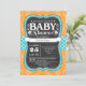Convites Orange Teal Chalkboard Floral Chá de fraldas Invit