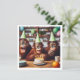 Um convite muito legal para retratar orangotangos sentados em uma mesa da cozinha celebrando com um bolo de aniversário e chapéus de festa, um convite para excelentes para amantes de orangotango, amantes de macacos e amantes de zoológico. O cartão pode ser totalmente editado e personalizado para ajustado das suas necessidades.