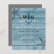 Design de madeira azul russa e elegante. Sobreposição de selo de Starfish com gráfico sólido âncora. Convites de chá de panela costeiros. Todo o texto é ajustável.