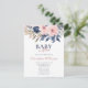 Torne seu chá de fraldas inesquecível com este sofisticado convite para chás de fraldas. A design apresenta belas flores cor-de-rosa e marinho, fazer-as na moda e charmosa, enquanto a frase "Bebê na flor" acrescenta um elemento lúdico à carta. Use as ferramentas de design para personalizar o texto. Também disponível como download digital.