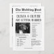 Convites Orçamento, código QR, casamento de jornal engraçad
