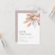 Este anúncio de casamento "salve-a-data" apresenta um tema elegante de boho floral com cores de tom de terra mudo. Personalize o texto na frente e atrás com todos os detalhes do seu casamento.