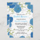 Convites Ornamentado Azul Flores e Chá de panela Verde Folh