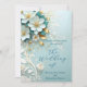 Convites Ornamentado Dourado Floral Branco Azul Elegante