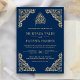 Convites Ornamentado Floral Casamento Islâmico Azul e Doura