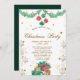 Um convite elegante para festas de férias com Enfeites de natal retrorados, presentes e flocos de neve de ouro em fundo verde. Estes belos convites de Natal são perfeitos para convites de festas de janto de Natal, convites para troca de presentes de Natal, angariadores de fundos de Natal, convites para bolas de férias e outros eventos realizados durante o mês de dezembro. Use apenas os campos modelo para adicionar suas próprias informações de evento.