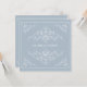 Os ornamentos antigos românticos em branco contra fundo azul de ardósia clara servem de quadro para este convite. Personalize totalmente com seus próprios nomes e informações. Um convite adequado para qualquer ocasião: casamentos, festas de noivado, uma data de salvamento ou um evento corporativo. Disponível em cores alternativas com cartões, favores e postagem correspondentes.