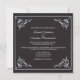 Os ornamentos antigos românticos em branco contra fundo preto rico servem de enquadramento para este convite. Personalize completamente com seus próprios nomes e informações. Um convite adequado para qualquer ocasião: casamentos, festas de noivado, uma data de salvamento ou um evento corporativo. Disponível em cores alternativas com produtos correspondentes.