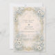 This luxurious wedding design features a soft antique ivory background framed by romantic blush roses, delicate greenery, and ornate baroque gold detailing. Inspired by classic European elegance, the composition feels refined, timeless, and opulent, with flowing florals and sculpted gold accents that create a graceful, romantic atmosphere. Perfect for couples drawn to vintage charm, old-world luxury, and an elevated, elegant wedding aesthetic.