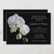 Continuem celebrando a noiva e noiva recém-casados na manhã seguinte à cerimônia de casamento com a Orquídea Branca bonito no Posto Negra Convite Brunch. Esta elegante floração personalizada Após o Café da Manhã de Casamento ou o Convite de Luncheon apresenta uma fotografia floral de flores de orquídea de falaenopse branca no caule com fundo preto.