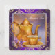 Um belo convite de festas de chá de noiva, roxo e ouro, apresenta um fundo elegante, roxo e dourado, de cor aquática, com elegante bule de porcelana de ouro e chá, com flores de orquídeas roxas e douradas. Este lindo convite de festas de chá de ouro e roxo funciona bem para um convite de festas de chá de tarde, convite de festas de chá de noiva ou qualquer outra festa ou evento especial e é facilmente personalizado adicionando detalhes do evento, estilo de fonte, tamanho de fonte e cor e texto. Observe que todos os designs de cartas e convites que você encontrará no Zazzle são gráficos impressos sem joias reais, arcos, relevo, relevo ou peças ou peças adicionadas.