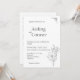 Convide seus entes queridos com elegância e cuidado para o planeta usando nosso convite minimalista de casamento com uma delicada linha de orquídea desenhada em conjunto com a tipografia clássica. O simples, porém sofisticado design destaca a beleza dos detalhes subestimados, combinando um delicado trabalho de arte floral com um estilo de fonte refinado. Criado com simplicidade e sofisticação, este design amigável do orçamento garante uma pegada ambiental mínima. Perfeito para casais que buscam sofisticação sem despesas excessivas. este convite combina a acessibilidade econômica com o eterno e pode ser combinado com uma opção de RSVP digital para abraçar ainda mais a sustentabilidade. Celebre seu amor com uma escolha séria que é tão bonita quanto seu grande dia.