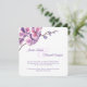 Convite para casamento de flores de orquídea roxa com texto de roteiro e logotipo de nome de casamento. O padrão no verso é opcional.