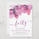 Um convite bolsa mensageifesta de aniversario elegante. Este design apresenta grandes orquídeas roxas de aquarela, "quarenta" em letras roxas elegantes, estilo de caligrafia moderna, sobre fundo branco. Os detalhes da festa estão em cinzas escuras e fontes roxas do sans serif. O inverso está em roxo sólido.