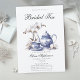 Modelo clássico, sofisticado, elegante e chic do chá de chá de panela, apresentando uma pintura aquosa de orquídeas brancas e um elegante conjunto de chá com um padrão de torre azul estilo Hamptons. Uma atmosfera romântica e sonhadora, reforçada pela caligrafia romântica e elegante. Perfeito para uma festa de chá chá de panela elegante, elegante e moderno, e noivas que amam orquídeas.