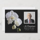 Convide os convidados a lembrarem o seu amado um ano depois de terem falecido com as elegantes Orquídeas Brancas no Convite de Aniversário da Morte Negra. Esta elegante celebração personalizada do convite à vida apresenta uma fotografia floral a preto e branco de flores de orquídeas da falaenopse branca no caule com um fundo preto.