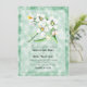 Um convite de casamento com orquídeas brancas em um fundo verde.