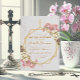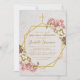 Este elegante convite geométrico de primeira comunhão floral tem uma estrutura de ouro irregular com buquês de flores de orquídeas brancas e cor-de-rosa para cima, para baixo, à direita e para baixo, sobre dois hexágonos de ouro que se sobrepõem a um fundo de mármore branco, com uma cruz de ouro no topo. O nome da criança é escrito em um roteiro caligráfico elegante. Todo texto tem uma cor amarela ouro, como o quadro dourado. O buquê de flores com orquídeas cor-de-rosa e brancas é de um cartão postal antigo de Bertha Maguire (1862-1910), agora no dominio público.