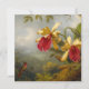 Cartão com as Orquídeas de pintura a óleo de Martin Johnson Heade e o Hummingbird (1902). Um belo beija-flor perche perto de duas orquídeas cor-de-rosa. Um presente perfeito para amantes de beija-flores e entusiastas de arte americanos!