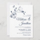 Crie a suíte perfeita de Casamento com este convite de casamento elegante e simples, com uma bela e delicada orquídea azul prussiana desenhando design no topo, sobre um elegante fundo branco minimalista e simples. Edite facilmente os campos de modelo para adicionar os nomes da noiva e do noivo em uma fonte azul-escura de classe e os detalhes de data e local em uma fonte moderna de todos os bonés. Veja a coleção correspondente de "Orquídeas Delicadas - Suínos Azuis Prussianos" para ver todos os itens coordenadores.