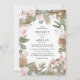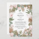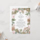 Convites de casamento Chic Boho. Design apresenta um fundo branco clássico adornado com uma aquarela suculenta, eucalipto verde, bonito flores de orquídea rosa, folhas secas rústicas, erva-pampas e outras folhagem botânica. Fácil de personalizar usando o modelo fornecido.