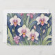 Anuncie seu dia especial com esta elegante placa "Salve a Data", com um design de jardim de orquídea impressionante. A frente da placa apresenta orquídeas delicadas em tons de lavanda, pêssego e rosa macio, colocadas sobre um fundo branco e limpo. A tipografia sofisticada complementa perfeitamente as intrincadas ilustrações florais, criando um olhar harmonioso e refinado. O dorso continua o tema com uma exibição luxuosa e vibrante de orquídeas contra um fundo azul profundo, acrescentando um toque de luxo e elegância. Este cartão é ideal para casais que procuram dar o tom para uma celebração romântica e eterno de casamento.