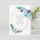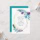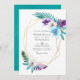 Folhas e orquídeas tropicais coloridas com cor d'água coloridas convite para casamento com moldura geométrica dourada e lavagem com cor d'água azul turquesa inversa. Ideal para qualquer tema ou casamento de jardim. O código QR no verso direciona para o seu local de casamento onde o pessoas pode aprender mais e rsvp.