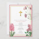 Um belo design batismo com flores cor-de-água cor-de-rosa, Cruz de ouro e um ícone ortodoxo grego da Virgem Maria no verso da carta. Um design religioso ideal para o Natal Batismo de uma menina. Os artigos de papelaria e decoração correspondentes podem ser vistos nesta coleção de designs.