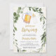 Este convite apresenta cor-de-água verde com uma garrafa de cerveja e bebê e sotaques de folha de ouro.