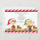 Este é um convite adorável da festa de Natal. Tem um fundo listrado vermelho e branco. Então há uma beira fina preta com um centro branco. Há este duende bonito da menina que guardara um pincel que trabalha em uma mesa com um duende adorável do menino. Os duendes são vestidos em chapéus vestindo-se vermelhos e verdes do papai noel. Personalize com informação do partido acima deles. Verifique para fora o muito outro design e produtos que nós temos em convites do Natal. Ilustrações do © JW