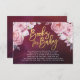 Pena floral natural de Boho da aguarela elegante e roteiro escrito à mão no fundo estrelado vermelho do céu de Borgonha.