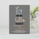 Este género bonito e lunático revela características que lisas do cartão do convite de festas uma ilustração de um par de brincalhão cora rosa e patinho azul do aqua com do "tipografia corajosa MENINO ou da MENINA" na parte dianteira do cartão.