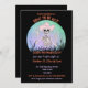 Este Bone divertido para ser selvagem sob o convite do Dia das Bruxas à Lua com um esqueleto vestindo um chapéu de vaqueiro e mostrando sinais de paz em um fundo negro é perfeito para a divertida festa do Halloween.