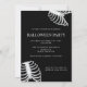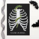 Design de Halloween apresentando a ilustração divertida de Destei de uma gaiola de costelas junto com um cobra verde e uma teia de aranha. A cor de fundo é preta, mas pode ser alterada para qualquer outra cor, se assim o desejar. Do outro lado há mais duas designs de gaiolas (sem o cobra) junto com áreas de texto personalizáveis.