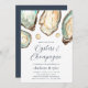 Planejar uma torrada de ostras, ostras e champanhe, ou festa de noivado temática de marisco? Este convite de festas chic costeiro apresenta exemplos de ostra aqua e ostra aqua-aquarela, com detalhes de eventos em azul-marinho clássico. Perfeito para as comemorações do tema da praia, do verão ou do noivado.