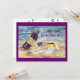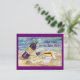 Uma garrafa de vinho tinto inclina-se contra um copo de vinho de meia cheio na praia. Uma bandeja de queijo está pronta para ser cortada, e um segundo vinho está pronto para ser enchido. As conchas estão misturadas na praia de areia. Ondas de oceano de cor pastel suave estão saltando ao fundo. O rótulo do vinho pode ser personalizado para a sua própria mensagem numa garrafa! Pintura feita em aquarela. Adicione seu próprio texto à parte de trás dos convites de festas de praia de vinho tinto. Faça convites personalizados com o seu próprio texto e imagens para o seu convite de festa!