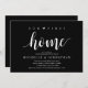 Our first home, new home housewarming party invitation card ("our first home") in white black theme, with cute little heart. Planning a housewarming party in celebrating your new home with your family and friends? Invite your guests with this beautiful and perfect Rustic calligraphy themed housewarming party invitation card.