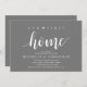 Our first home, new home housewarming party invitation card ("our first home") in dark grey theme, with cute little heart. Planning a housewarming party in celebrating your new home with your family and friends? Invite your guests with this beautiful and perfect Rustic calligraphy themed housewarming party invitation card.