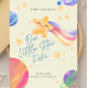 Celebrate your shining little star with this adorable galaxy-themed baby shower invitation! Featuring a smiling shooting star, watercolor planets, and soft pastel hues, this invitation adds a touch of cosmic magic to your celebration.