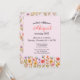 Celebrate your little one with this sweet “Our Little Wildflower” 1st birthday invitation, featuring a soft pink background and a charming border of colorful wildflowers and buzzing bees along the bottom. Your child’s name is displayed in a beautiful script font in a coordinating floral shade, while the party details are set in an elegant serif font for a timeless touch. Designed to be easy to customize, this invitation is as practical as it is adorable. The back of the card showcases a delightful all-over pattern of matching wildflowers and bees for a perfectly cohesive look.