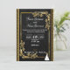 Decoração preta e quadro de ouro, convite elegante para casamento