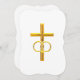 Convites Ouro 3-D Cruz com Anéis de Casamento